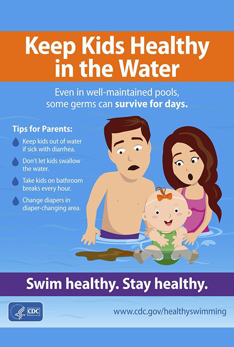 如果患有腹瀉,請不要游泳或讓孩子游泳。如果小隱孢子蟲是腹瀉的原因,應等到腹瀉停止2週後才去游泳。 查看游泳池、浴缸和水上游樂場的檢查分數。 入水前,使用測試條來檢查水的pH值和溴或是游離氯水平是否正確。 不要吞入任何池中的水。 每小時帶孩子休息一次,在專屬尿布更換區域為孩子更換尿布,並且盡量遠離水源。請留意,即使是管理維護良好的游泳池,某些細菌仍然可以存活數天之久。