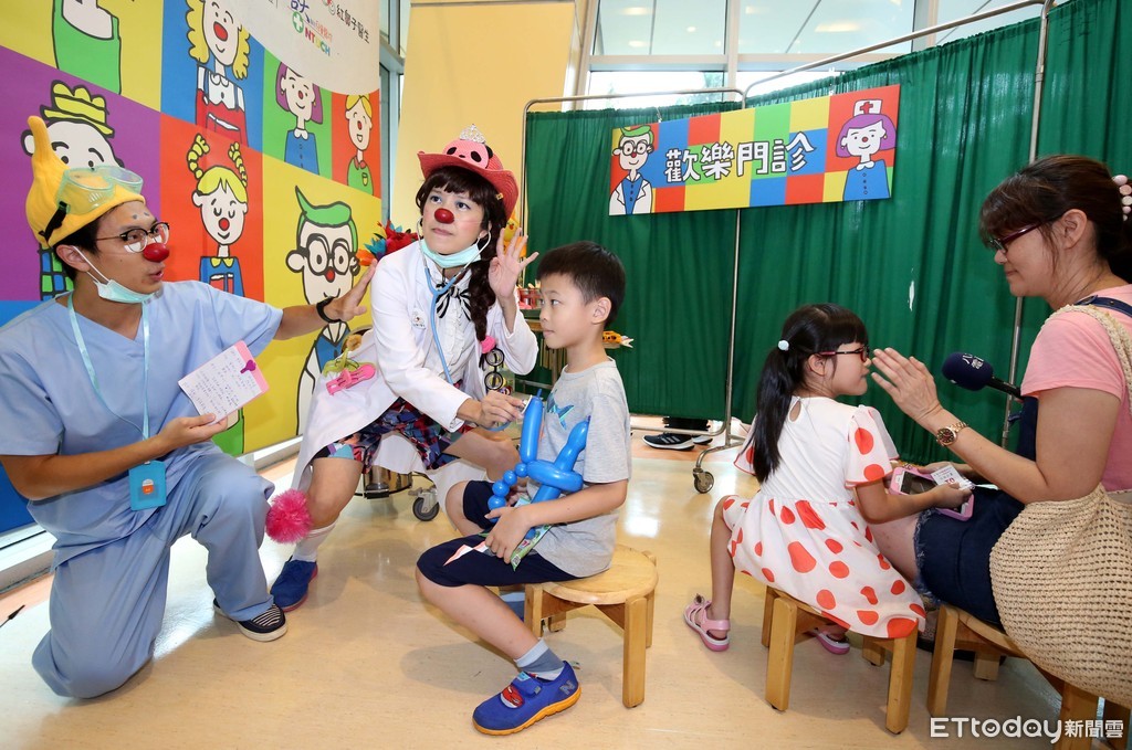 台大兒童醫院、信義公益基金會、紅鼻子關懷小丑協會聯手啟動「歡樂門診」,專業小丑醫生和魔術師還有信義房屋志工合作無間,使出渾身解數讓吸引病童。
