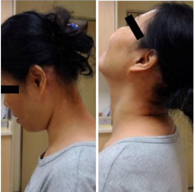 ▲該患者在治療前頸部僵硬,治療後明顯改善。(圖/北市聯醫提供)