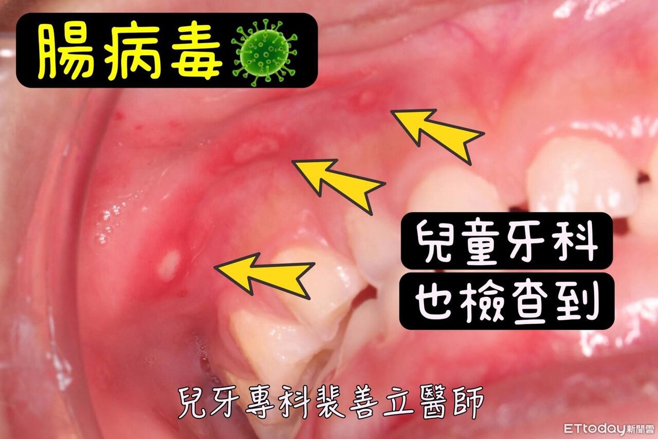 ▲孩童口腔發現小洞,確診腸病毒。(圖/裴善立醫師授權提供,未經同意請勿任意翻攝)