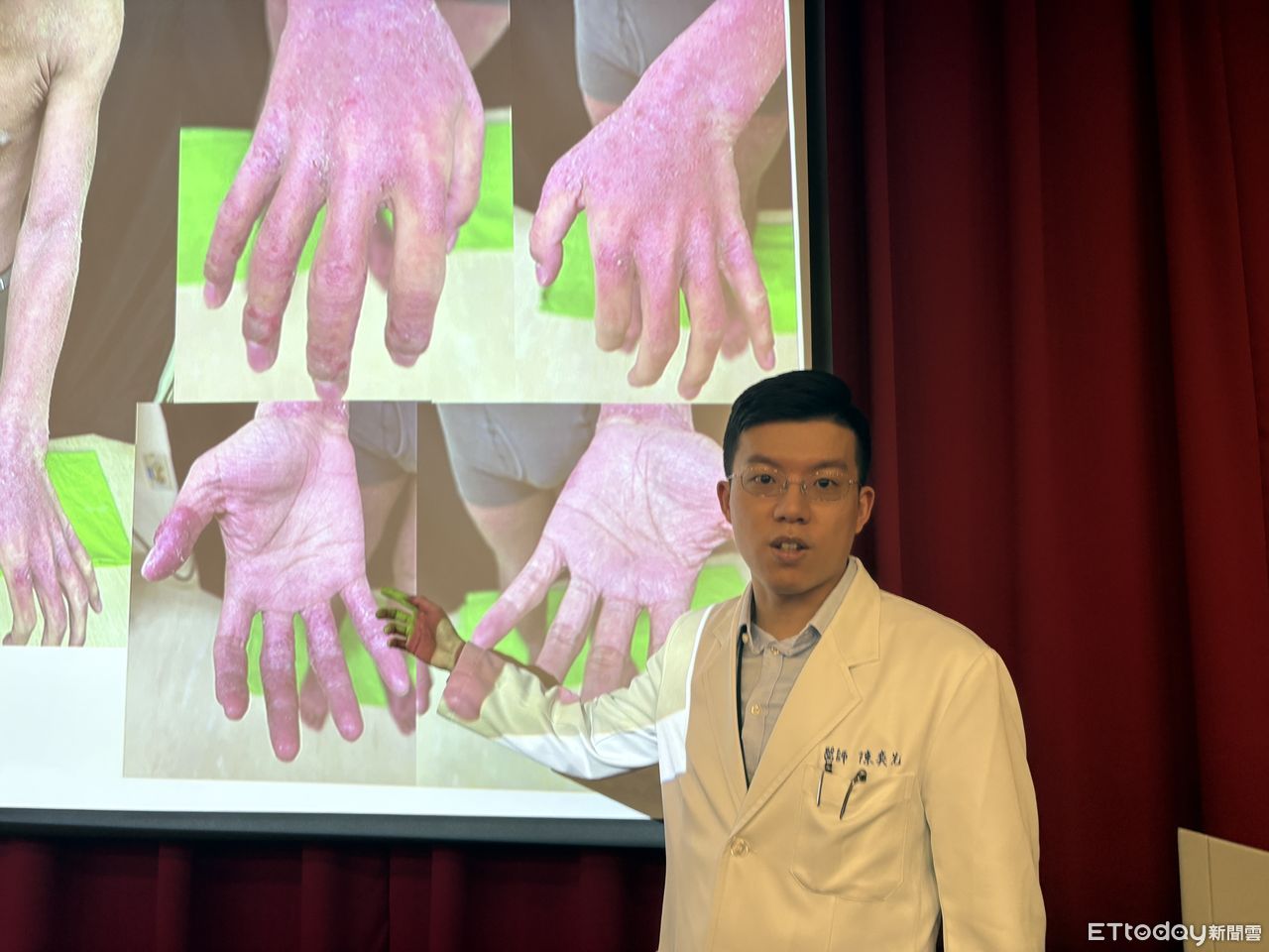 ▲三總皮膚部醫師陳奕先說明少女個案,全身上下都是病灶。(圖/記者洪巧藍攝)