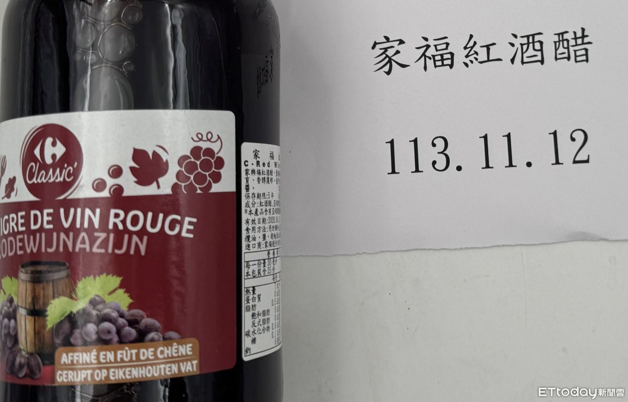 食藥署今公布最新食品邊境檢驗不合格產品,其中有一款家樂福自有品牌的法國產紅酒醋,被檢出二氧化硫量超標,共450公斤產品必須退運或銷毀。另外還有「大江生醫」從中國大陸進口的大麥草粉,驗出不得檢出的農藥代謝物。