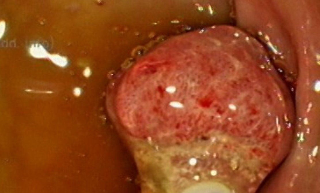 許秉毅指出,患者剛聽到要做大腸鏡時很猶豫,因聽說做大腸鏡很痛,「後來我告訴她,做大腸鏡只是肚子脹脹的,不會很痛,她才願意做檢查。結果沒想到一檢查,就發現直腸裡有一個1公分的腺瘤性息肉,切下來化驗,竟然一部分已經轉變成大腸癌了!」
