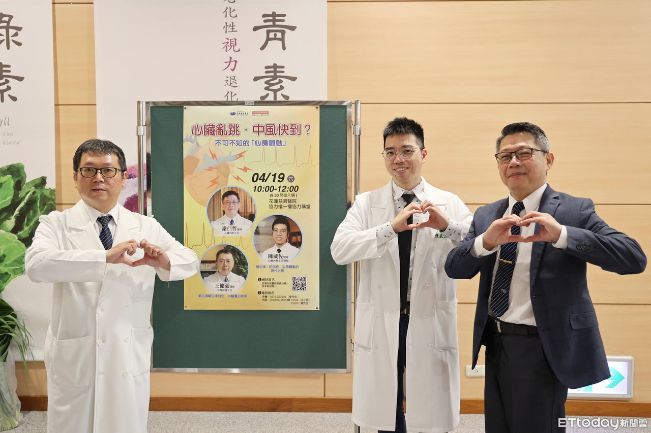 「醫師,我的心臟有時候突然砰砰跳,還跳很快!」小心,可能就是心房顫動的徵兆,19日上午花蓮慈濟醫院舉辦「慈醫365.健康又幸福」系列講座「心臟亂跳.中風快到?不可不知的『心房顫動』」,由心臟內科謝仁哲主任、陳威佐醫師,以及中醫部王健豪副主任,分享測心律、穩心律和防血栓的秘訣、同步國際間最新的脈衝場消融術(PFA),以及中醫養心攻略。