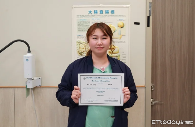 獲得國際傷口造口師認證的吳佩芳,最初是在門診見到造口病患皮膚損傷嚴重,但院內缺乏專職護理師協助,於是決心轉任專責角色,憑藉12年臨床經驗,及醫學中心2年訓練與考核,順利於2024年取得傷口造口、失禁護理師國際級雙認證。