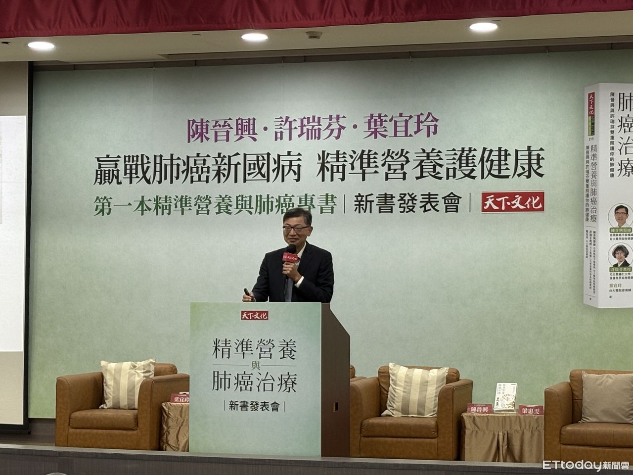 ▲台大外科部主任陳晉興於《精準營養與肺癌治療》新書發表會致詞。(圖/記者洪巧藍攝)