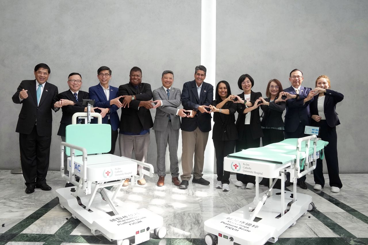 輔仁大學與輔大醫院攜手推動健康外交,由輔大校長藍易振代表致贈二台輔醫技轉研發的「輔大醫院棒磅秤」給友邦帛琉共和國,作為深化雙邊醫療合作的象徵。透過坐、站、躺三合一的伸縮式智慧磅秤,不僅使用便利,也大幅提升測量安全性與效率。帛琉總統惠恕仁(Surangel S. Whipps, Jr.)親自率團出席儀式,並表示對台灣醫療實力與民間交流的高度肯定。