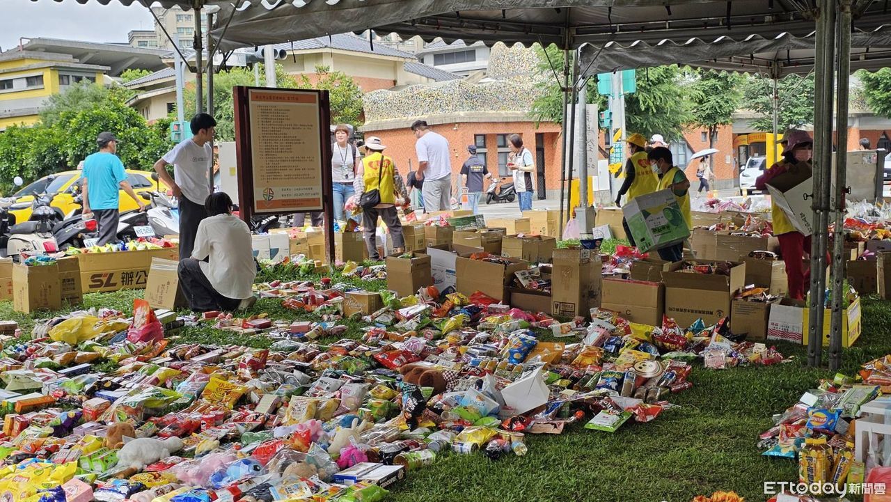 ▲三峽車禍3死,志工整理現場悼念物。(圖/記者呂佳賢攝)