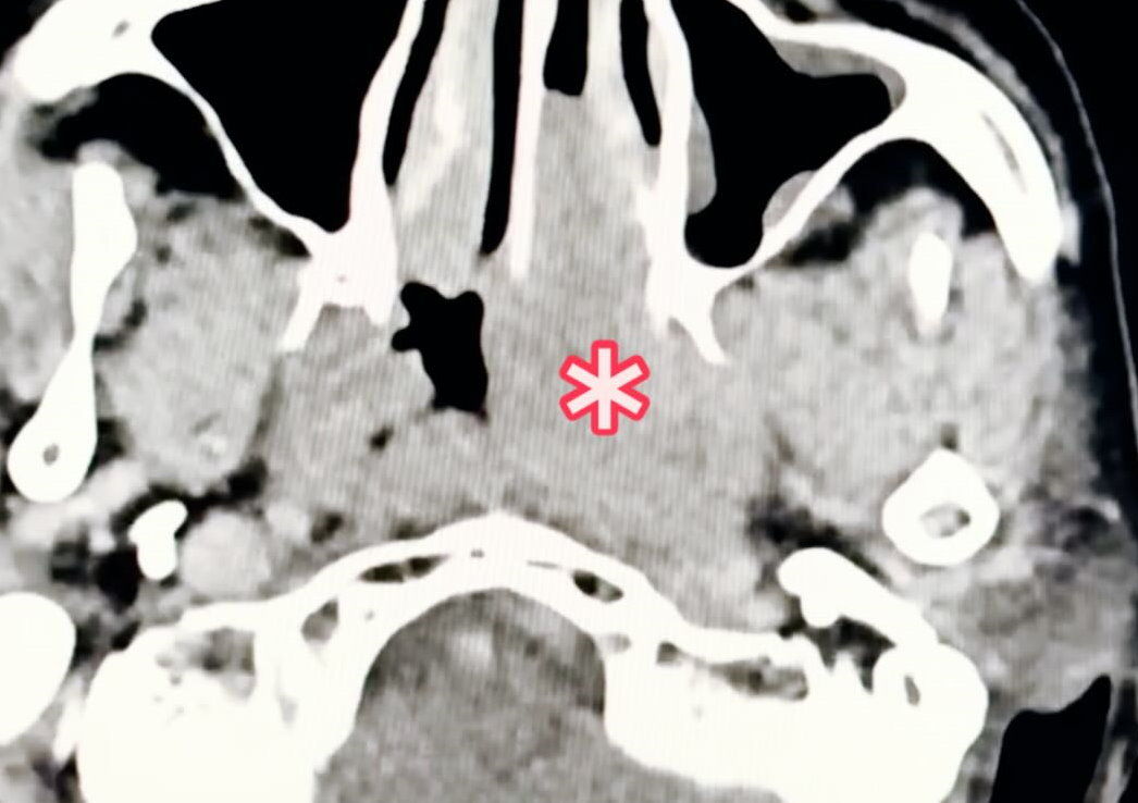 ▼患者的鼻咽腫瘤。(圖/翻攝李典憲臉書)