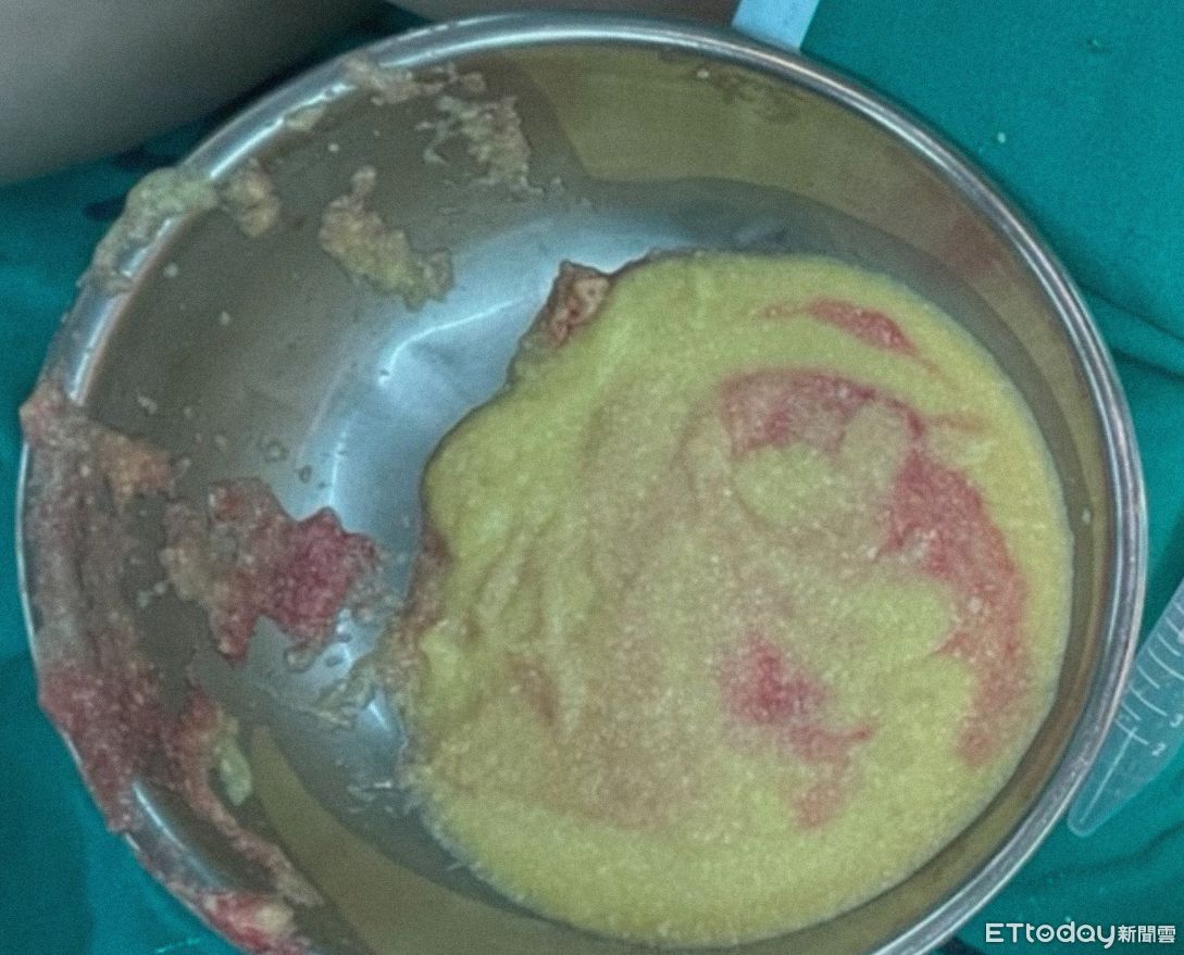 ▲女子隆乳多年後材質移位引發嚴重感染,數度引流出近1000cc有如小米粥的化膿物才改善 。(圖/馬偕醫院提供)