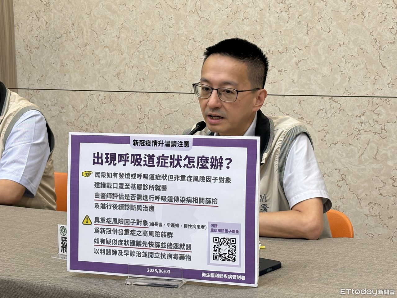 至於非重症風險因子對象,建議戴口罩到基層診所就醫,由醫師評估是否需進行呼吸道傳染病相關篩檢,及進行後續診斷與治療。同時也提醒不要一有症狀就衝去急診,以免醫療量能擠壓,快速就醫、由醫師診斷開藥才是正確流程。