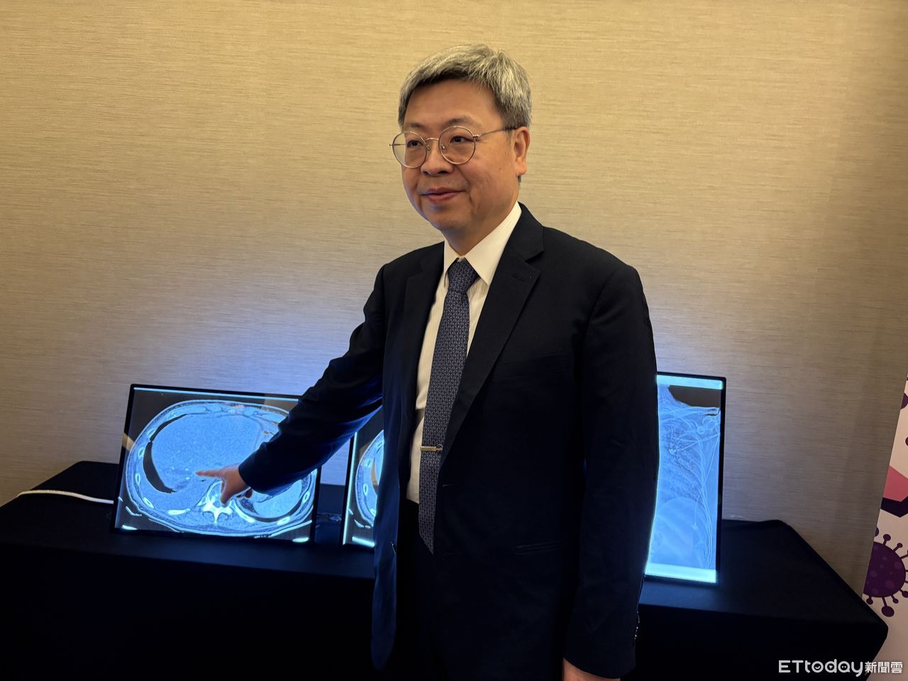 ▲新竹台大分院新竹醫院副院長盛望徽說明肝膿瘍感染個案。(圖/記者洪巧藍攝)
