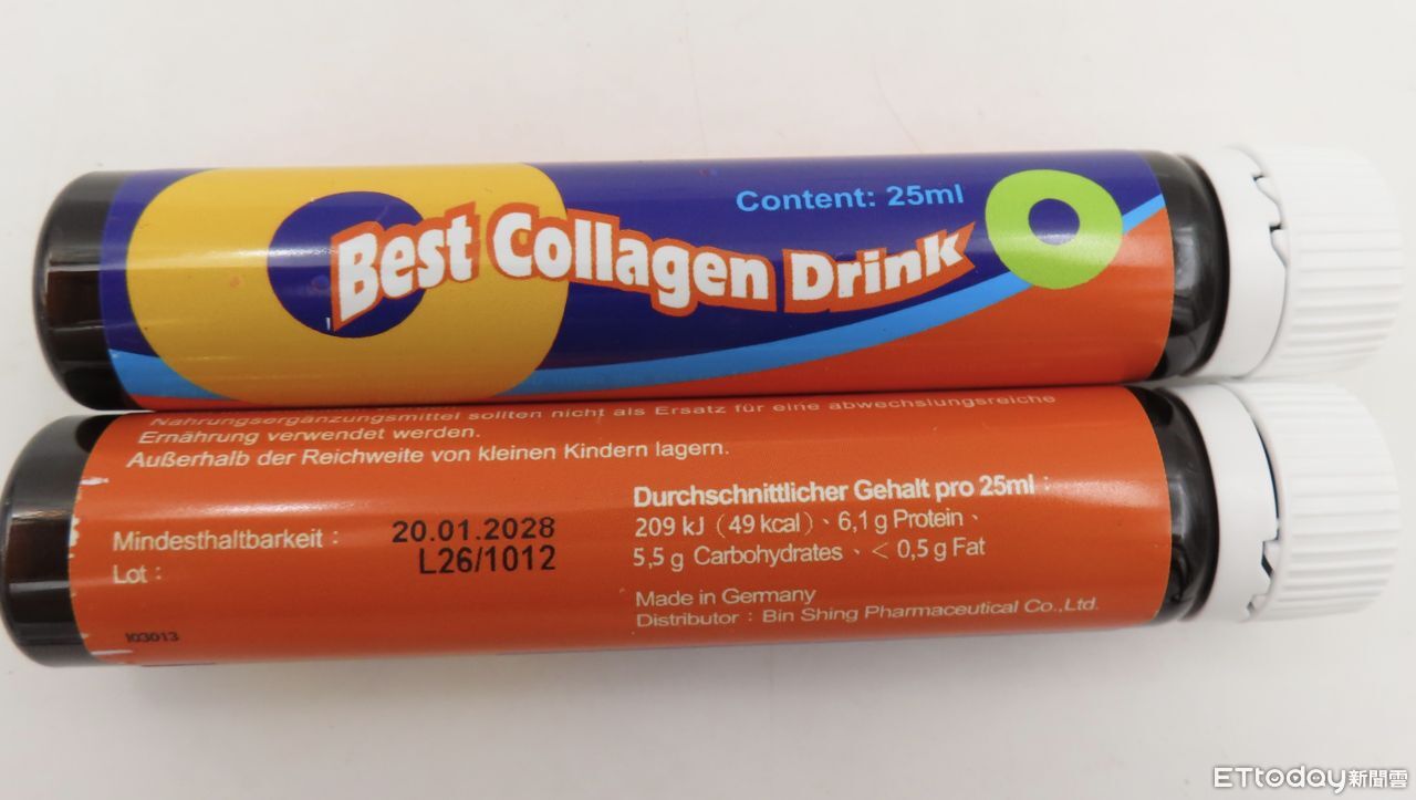 ▲德國膠原蛋白飲防腐劑超標。(圖/食藥署提供)