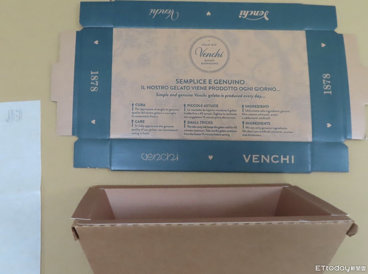 ▲Venchi的「環保外帶盒」檢出違規。(圖/食藥署提供)