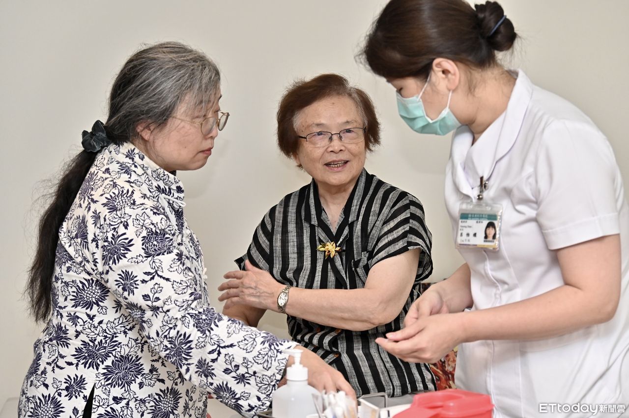 ▲83歲奶奶(中)在家屬陪同下接受新藥施打 。
