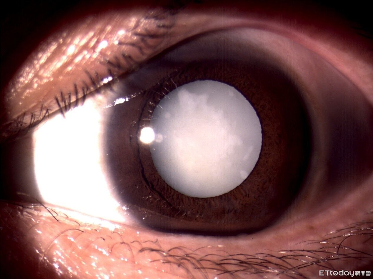 ▲病患的水晶體嚴重混濁,到院已是重度白內障併發青光眼,險些失明。(圖/長安醫院提供)