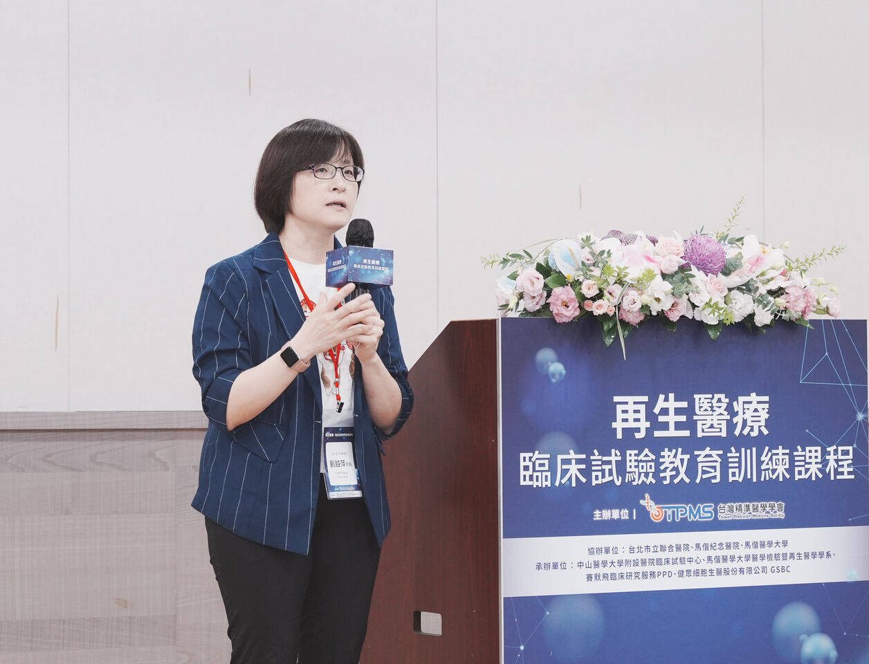 ▲衛生福利部醫事司長劉越萍出席「再生醫療臨床試驗教育訓練課程」發表專題演講。(圖/台灣精準醫學學會提供)
