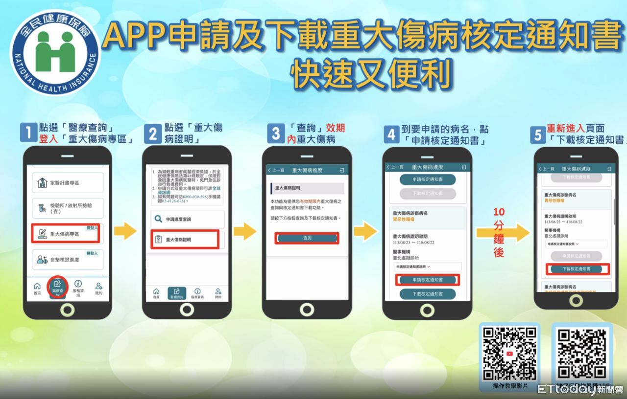 ▲App申請及下載重大傷病核定通知書。(圖/健保署提供)