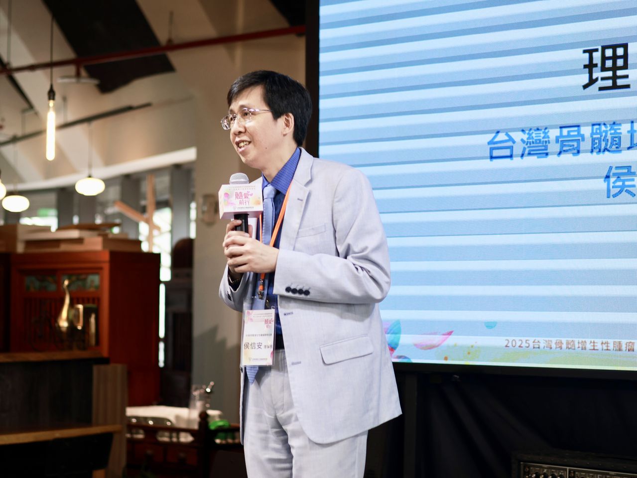 ▲台灣骨髓增生性腫瘤關懷協會理事長侯信安分享最新疾病知識、治療與照護資訊。(圖/骨髓增生性腫瘤關懷協會提供,下同)