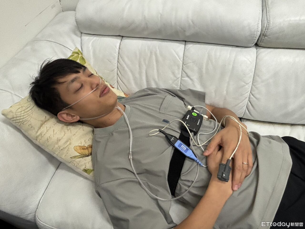 ▲居家睡眠檢查讓民眾可在自己熟悉的環境下接受檢測。圖非當事人。(圖/恩主公醫院提供)