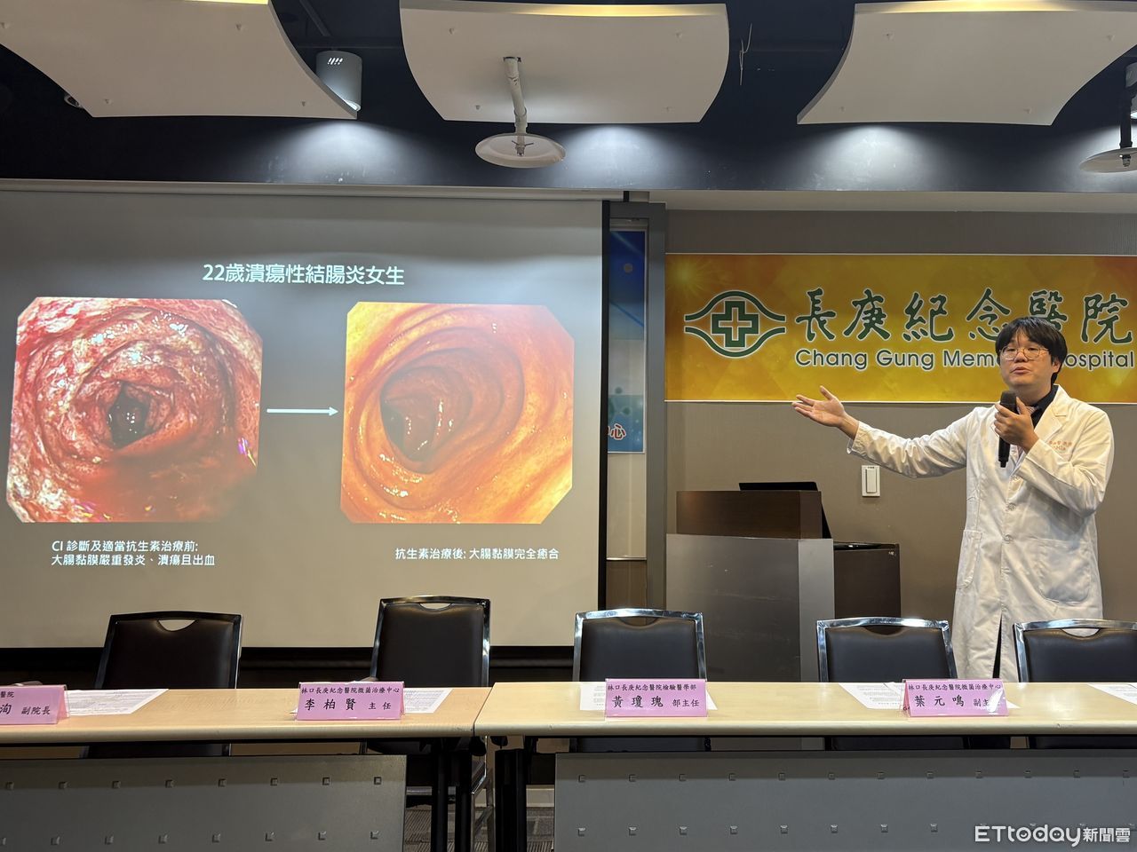 ▲林口長庚微菌治療中心主任李柏賢說明無毒梭菌個案。(圖/記者洪巧藍攝,下同)