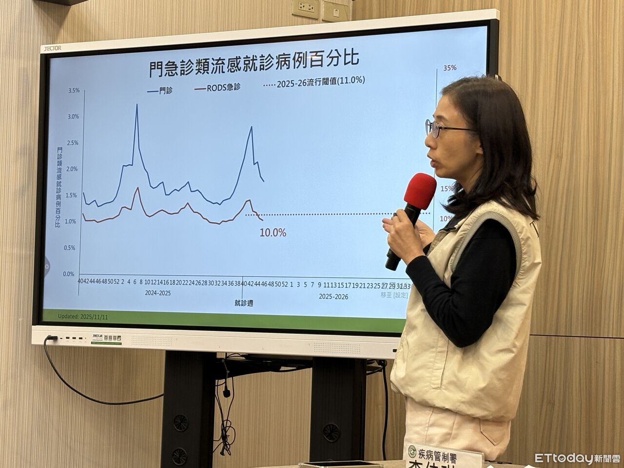 疾病管制署疫情中心副主任李佳琳表示,依據疾管署監測國內呼吸道傳染病情形,第45周(11月2日至8日)類流感門急診就診計101,100人次,較前一周下降7.5%,其中急診類流感就診病例百分比連續2周低於流行閾值,研判脫離流行期。