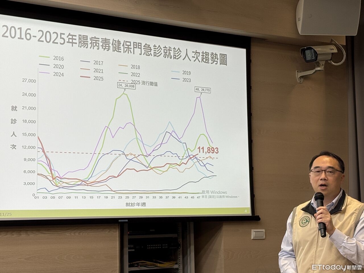 依據疾管署監測資料顯示,目前處腸病毒流行期且疫情持續上升,第47周(11月16日至11月22日)門急診就診計11,893人次,較前一周(11,444人次)上升3.9%;近4周實驗室監測顯示社區腸病毒以克沙奇A16型為多,其次為克沙奇A6型及克沙奇A5型。