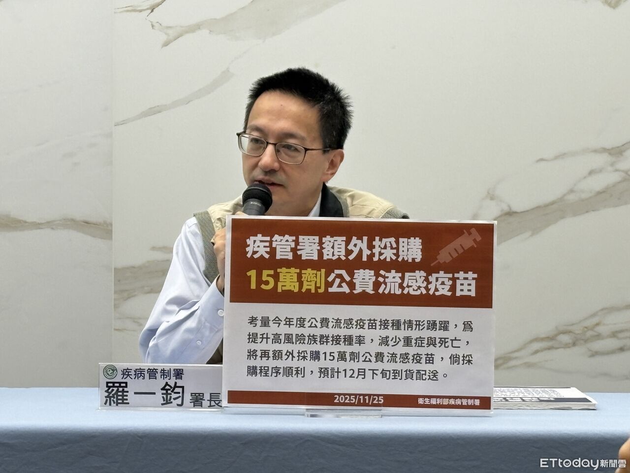 羅一鈞指出,今年公費流感疫苗接種踴躍,從10月1日開打以來已經接種612.5萬劑,使用率達到91.7%,剩餘疫苗55.4萬劑預期年底用罄,疾管署今(25)日宣布額外增購15萬劑,最快12月下旬到貨配送。民眾赴日前建議接種流感疫苗,如果非公費對象也可以評估自費接種,降低感染後發生重症和死亡風險。