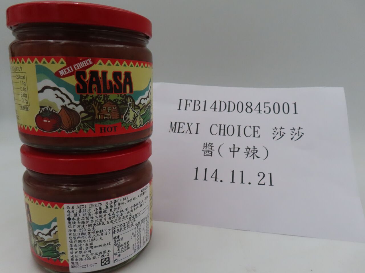 根據食藥署資料,「台灣咖樂迪股份有限公司」報驗2批違規產品分別是「MEXI CHOICE莎莎醬(中辣)」、「MEXI CHOICE莎莎醬(微辣)」,都被檢出殘留農藥環氧乙烷0.1 mg/kg。依據「農藥殘留容許量標準」,環氧乙烷為不得檢出,應低於檢測方法之定量極限0.1 mg/kg,不符合食品安全衛生管理法規定。