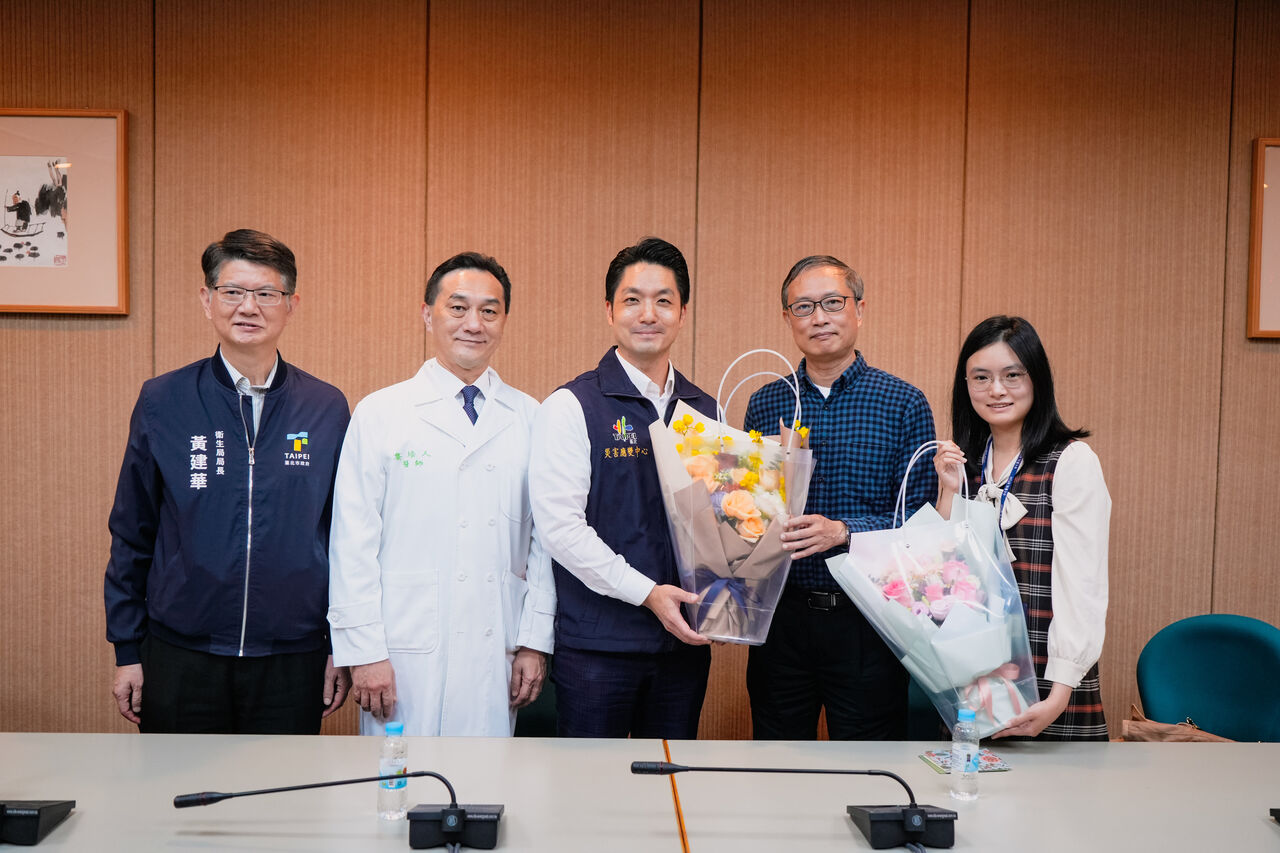 ▲台北市長蔣萬安親赴醫院感謝顏瑞昇父女檔。(圖/北市府提供)