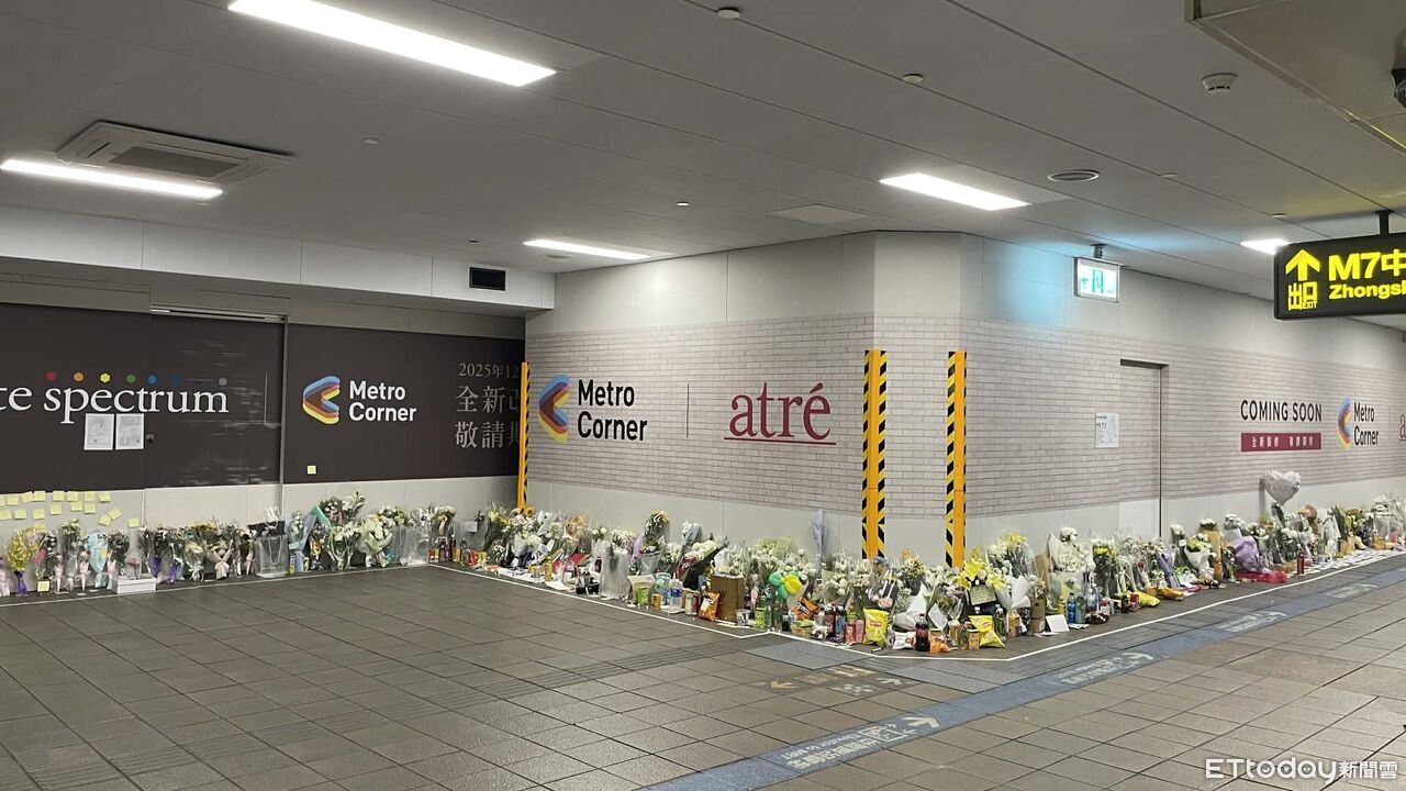 ▲張文在台北車站隨機犯案,M7出口民眾獻花致敬罹難者。(圖/記者許凱彰攝)