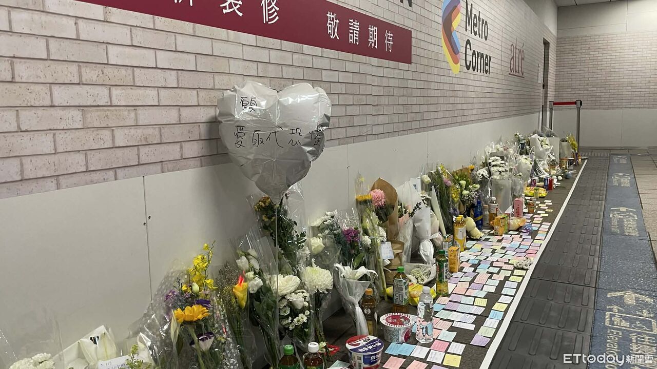 ▲張文在台北車站隨機犯案,M7出口有民眾獻花致敬罹難者。(圖/記者許凱彰攝)