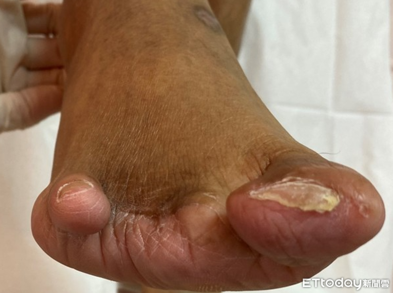 ▲女子發生耳念珠菌全身性感染,皮膚、眼部、足部都被侵犯,腳趾遭切除。(圖/醫師提供)