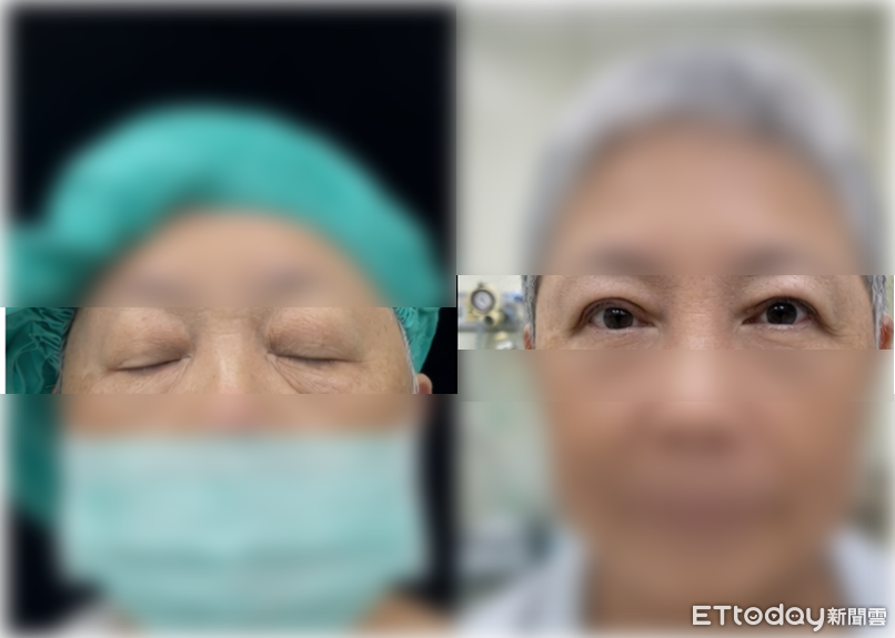 ▲婦人罹患較罕見的重度眼瞼痙攣,因眼輪匝肌異常放電,導致眼皮頻繁眨眼,有時會眨到「忘」了張開。(圖/中港澄清醫院提供)