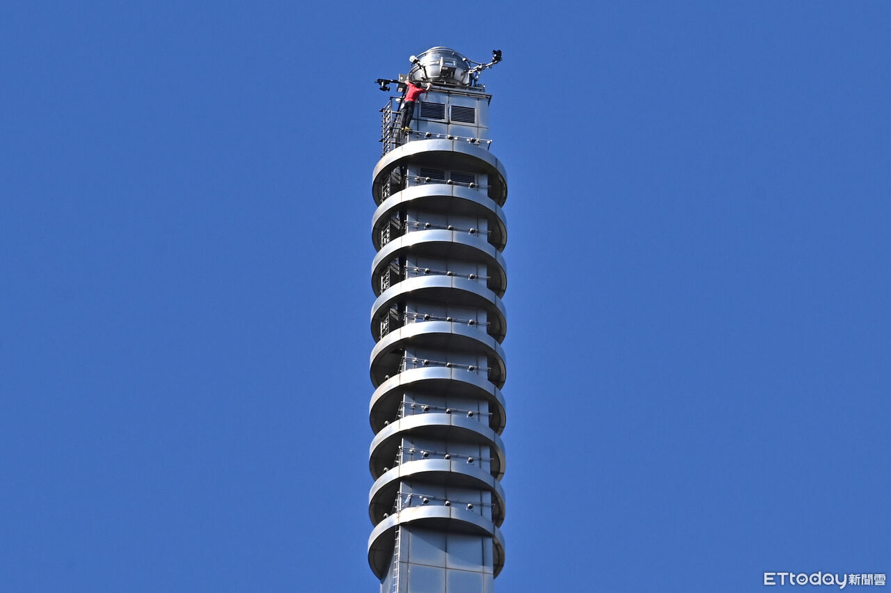 ▲霍諾德今徒手攀登台北101,成功締造壯舉。(圖/記者李毓康攝)