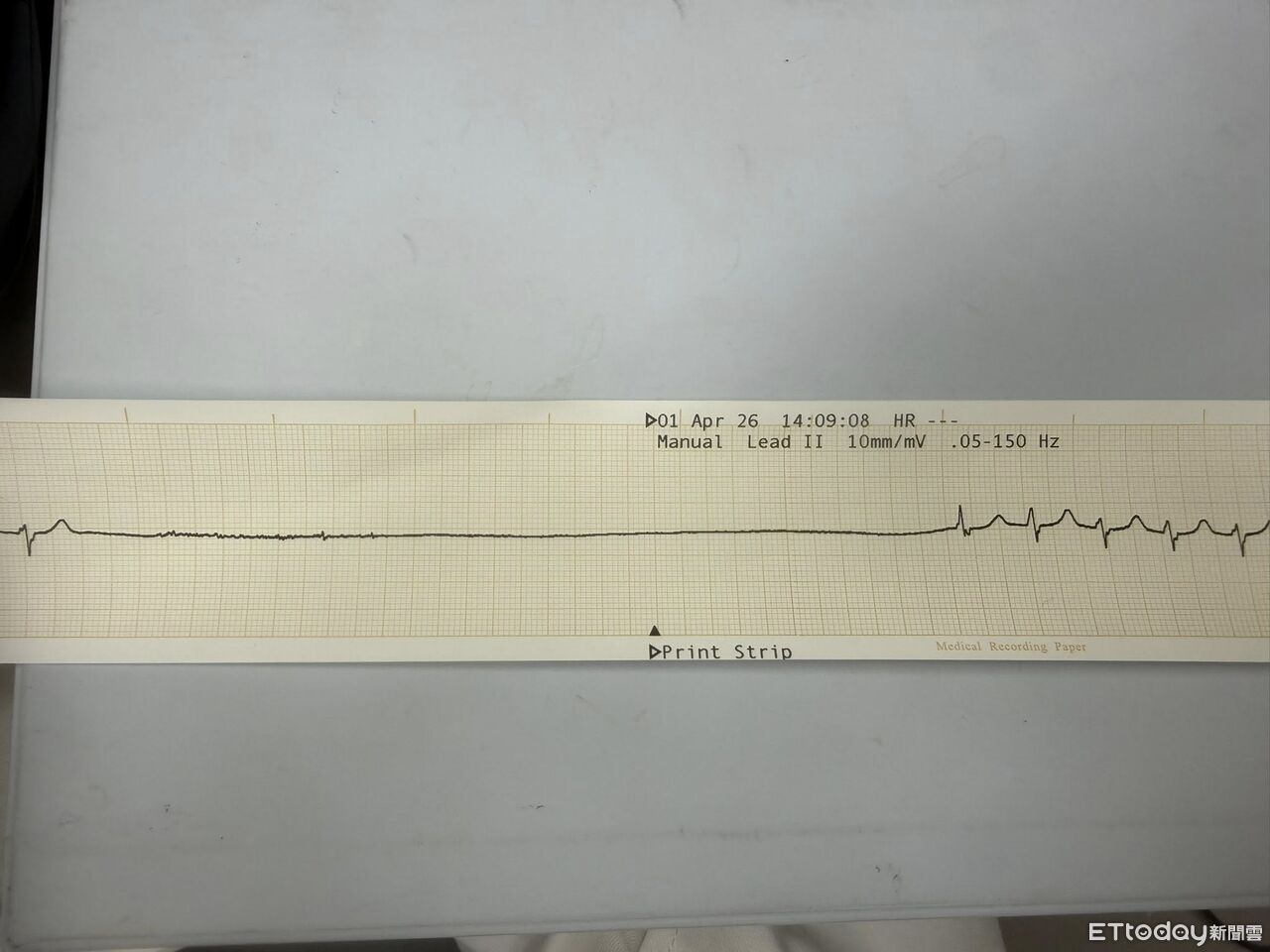 ▲男患者的心電圖監視器呈現「一長條」讓醫師瞬間嚇壞。(圖/粉專「急診醫師碎碎念」授權提供)