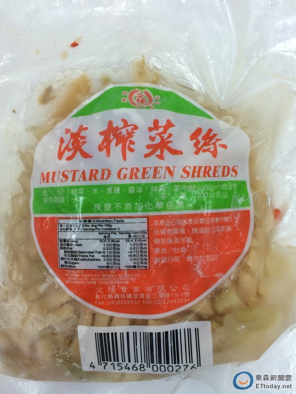 ▲廣川商行販售的四川榨菜漂白劑超標。(圖/台北市衛生局提供,下同)