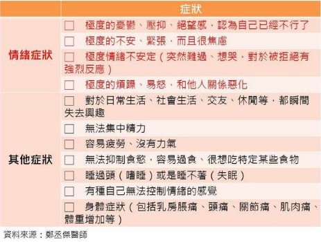 (女性朋友可以檢視看看自己是否有經前不悅症。圖片來源:鄭丞傑醫師提供;謝佳君整理)