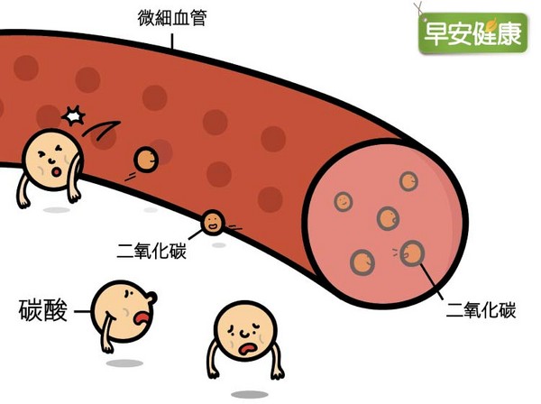 二氧化碳是人體細胞代謝活動後的廢物之一,需要透過血液帶走、運送到肺部、以呼氣的方式排出體外。然而,二氧化碳也可以溶於水,變成碳酸。