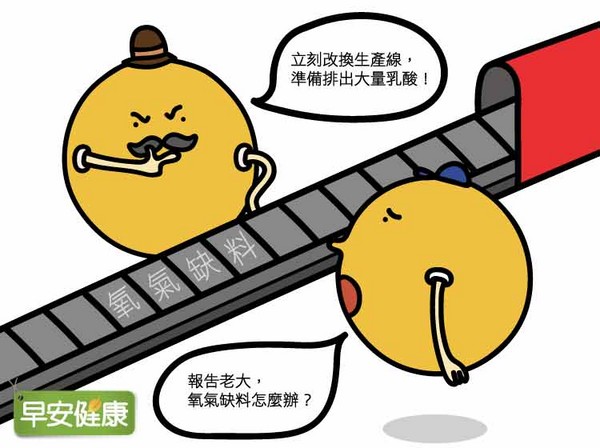 細胞在缺氧時會產生更多乳酸,乳酸堆積會讓酸水的負面效應擴大。